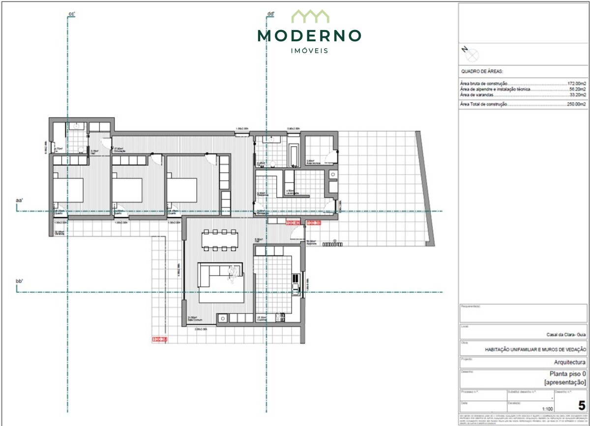 Área total construção: 250,00 m²                  Área bruta construção: 172,00 m²