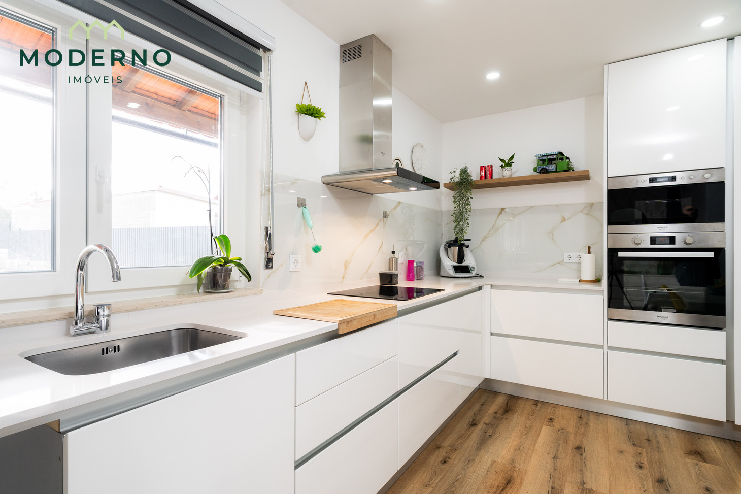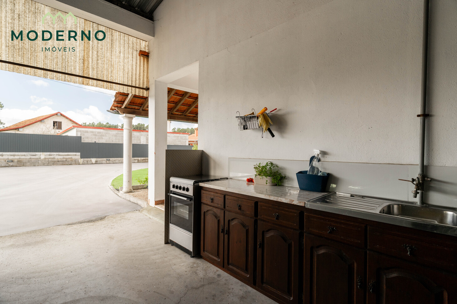- Espaço exterior coberto com 135 m², equipado com churrasqueira e bancada com lava-loiça;