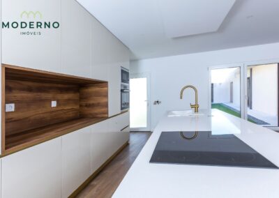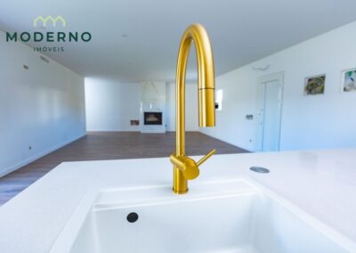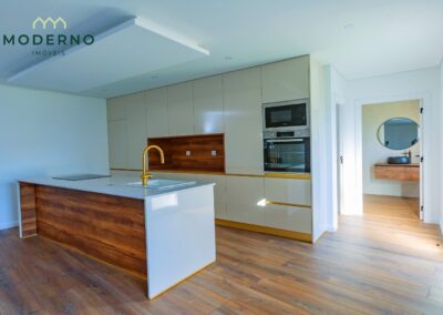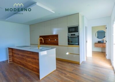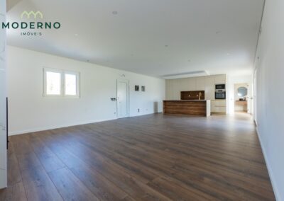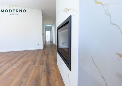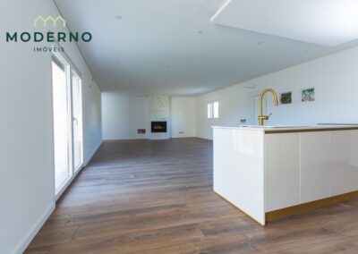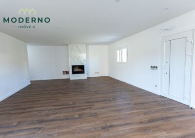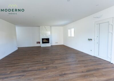 A área social destaca-se por uma sala ampla com recuperador de calor, perfeita para momentos em família, e ligação à cozinha totalmente equipada, que oferece praticidade no dia a dia.