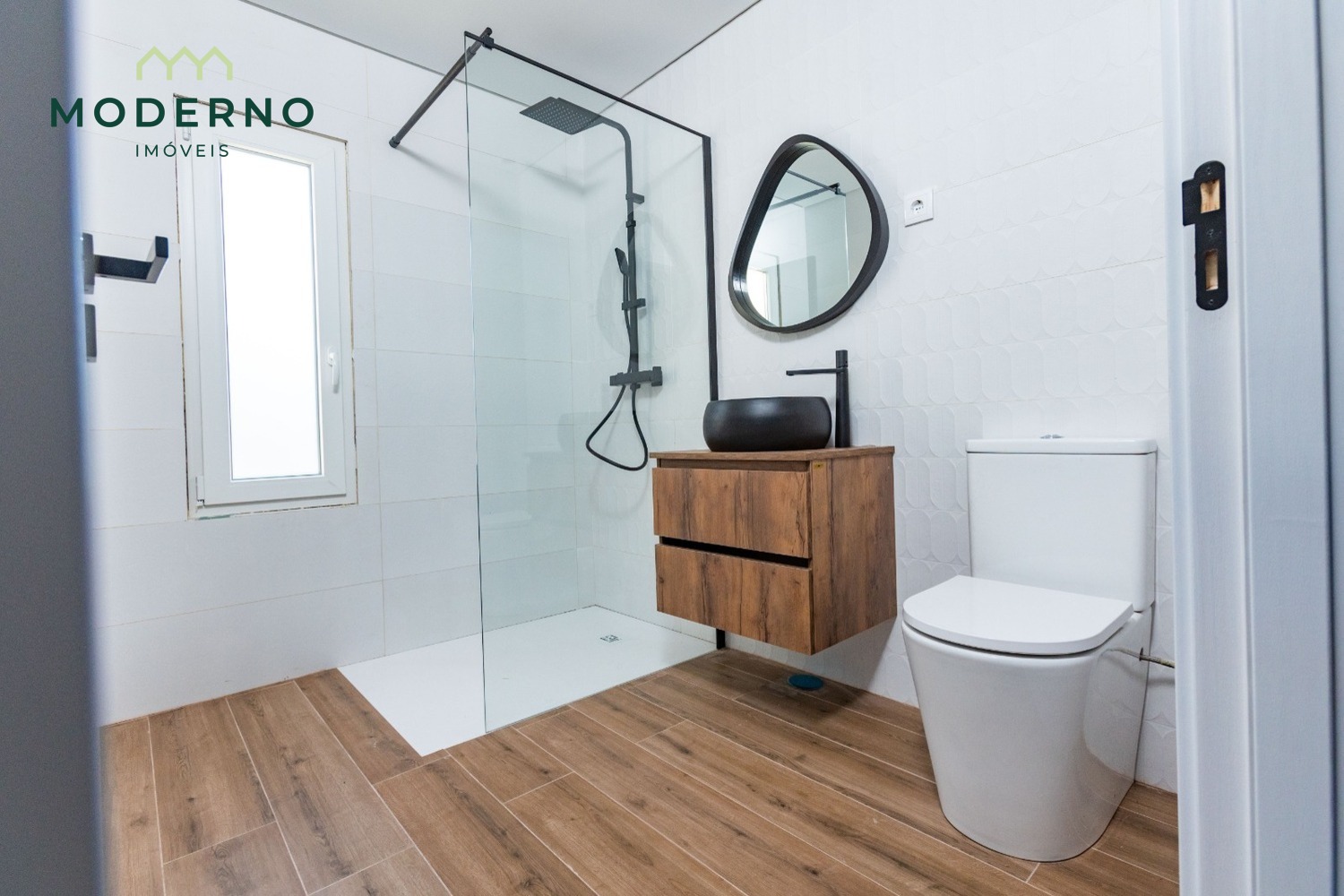 ✔ Caixilharia em PVC com vidro duplo e oscilo batente;