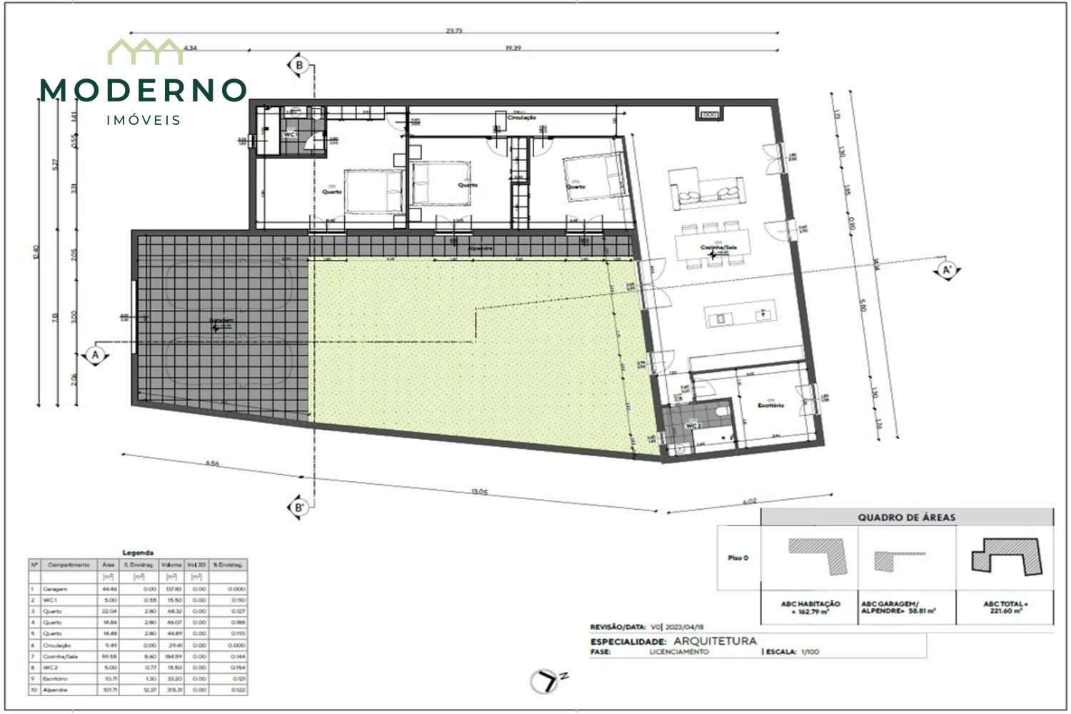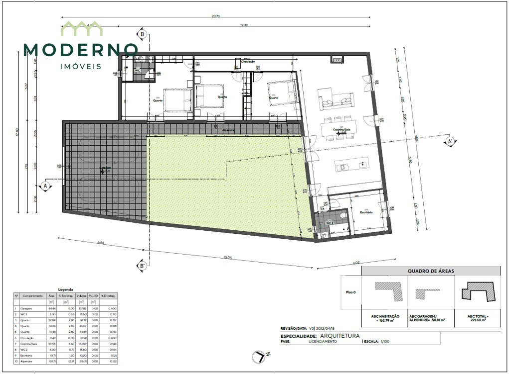 Área Bruta Construção: 221,60 m²