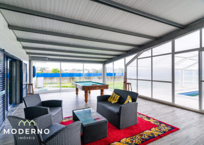 Moradia T4 independente, com piscina coberta aquecia e excelentes áreas, num lote de terreno de cerca de 1300m2. Com uma área bruta de construção de cerca de 295m2, está distribuída por dois pisos da seguinte forma: