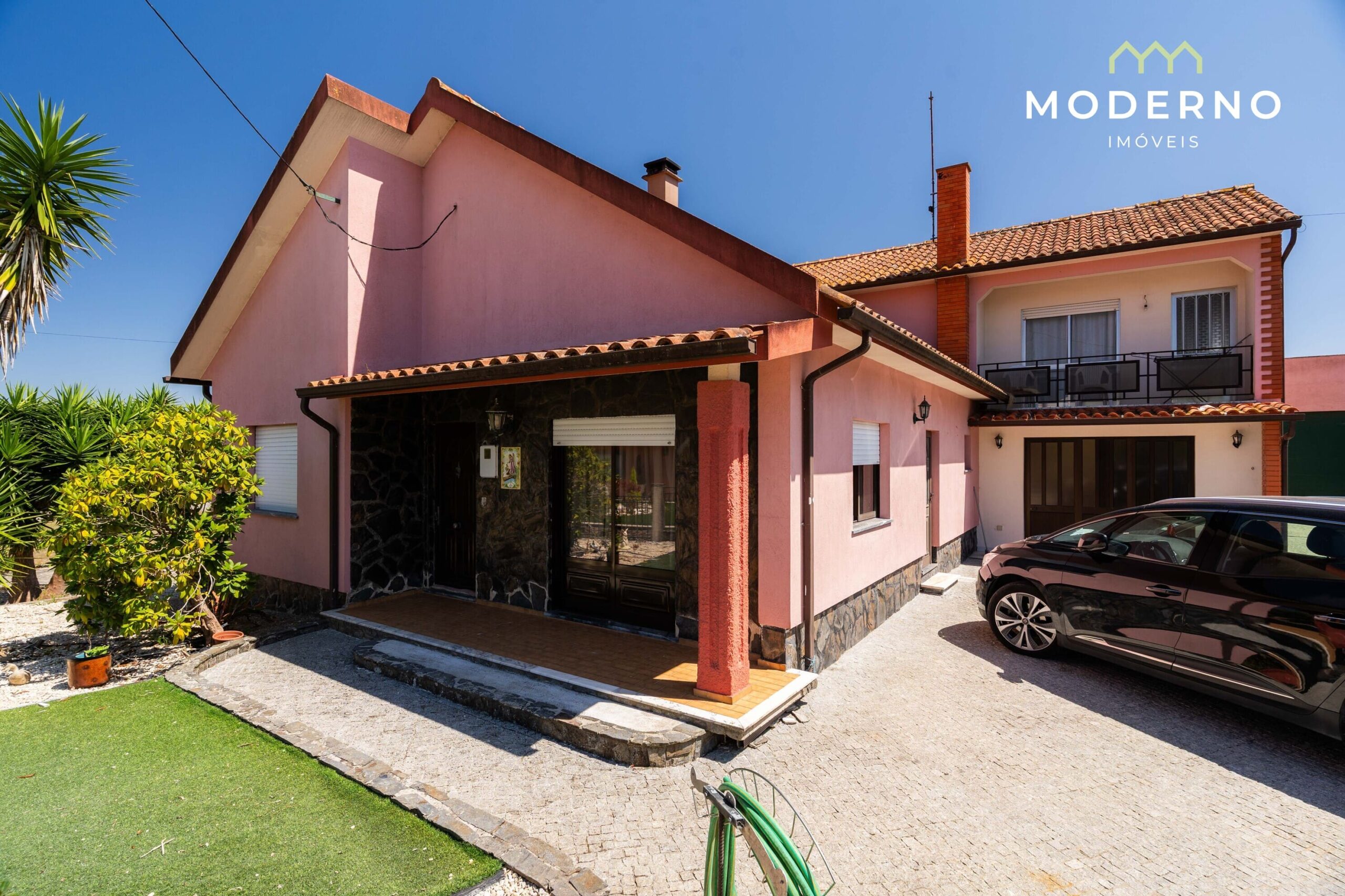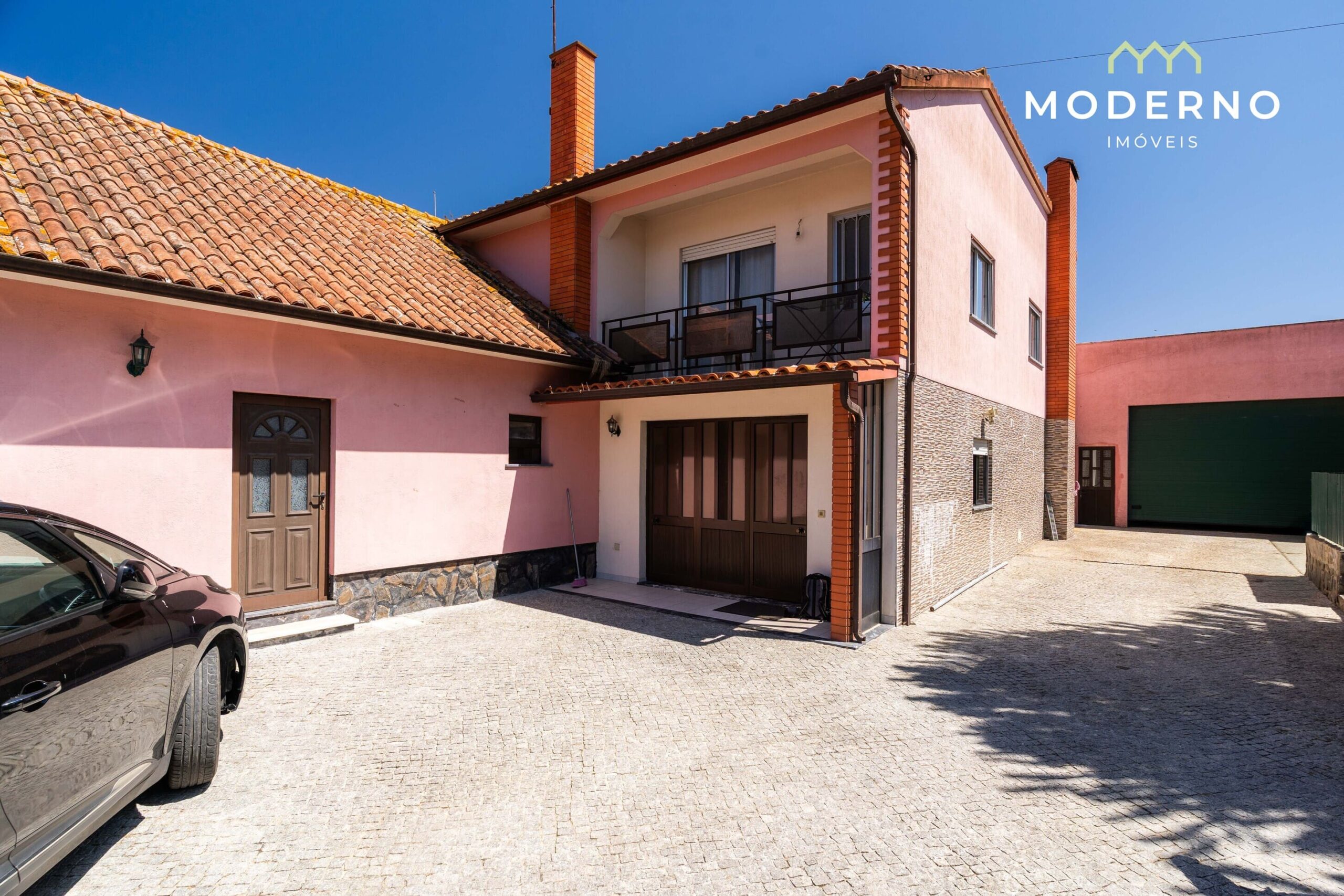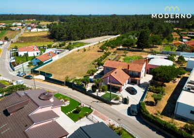 Moradia independente T5+2, de 553m2 de área bruta de construção, num lote de terreno de 1100 m2 e um terreno de cerca de 8800m2 com 730m2 em zona urbana (espaço urbano de baixa densidade), com capacidade de construção de moradia unifamiliar até 430m2.
