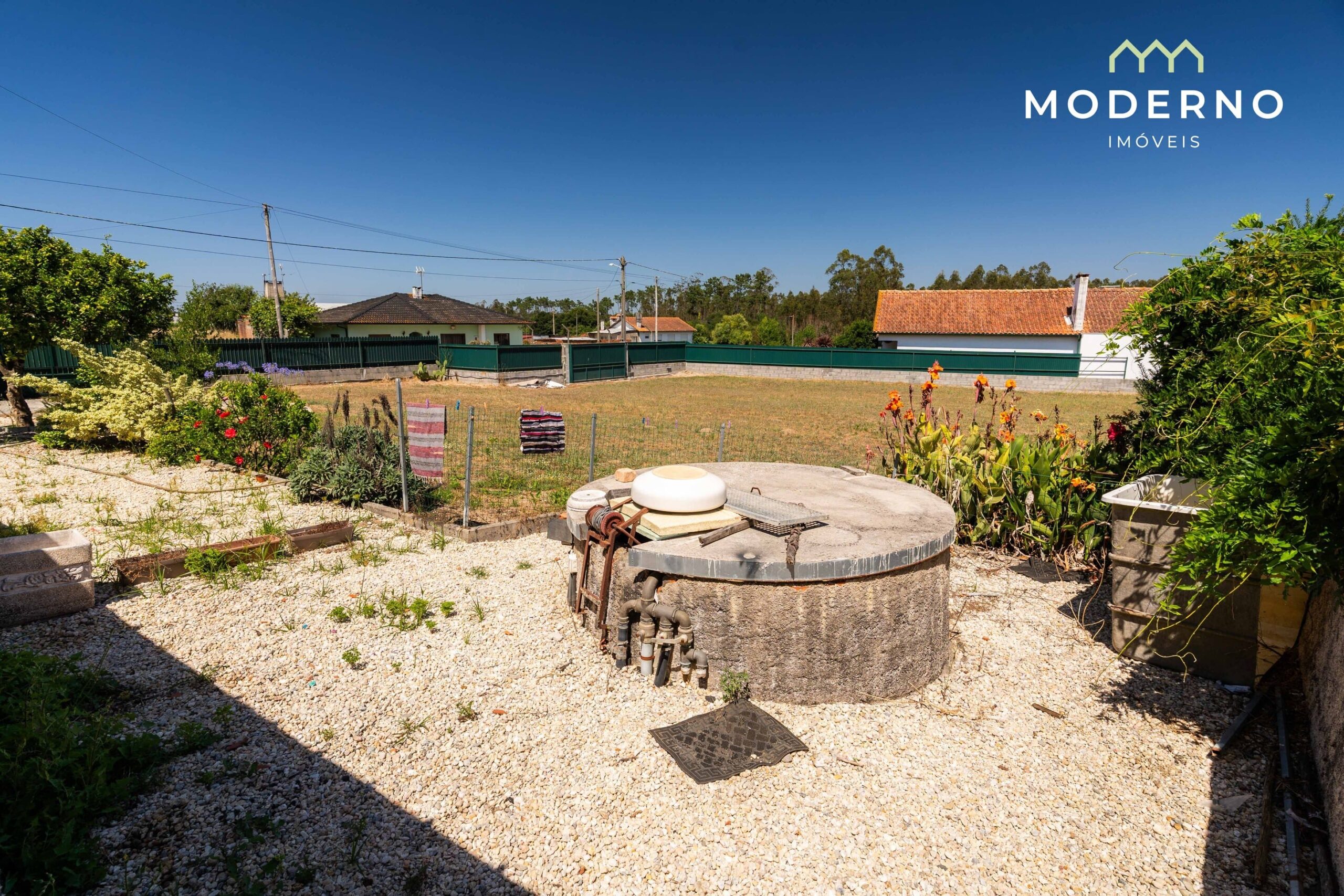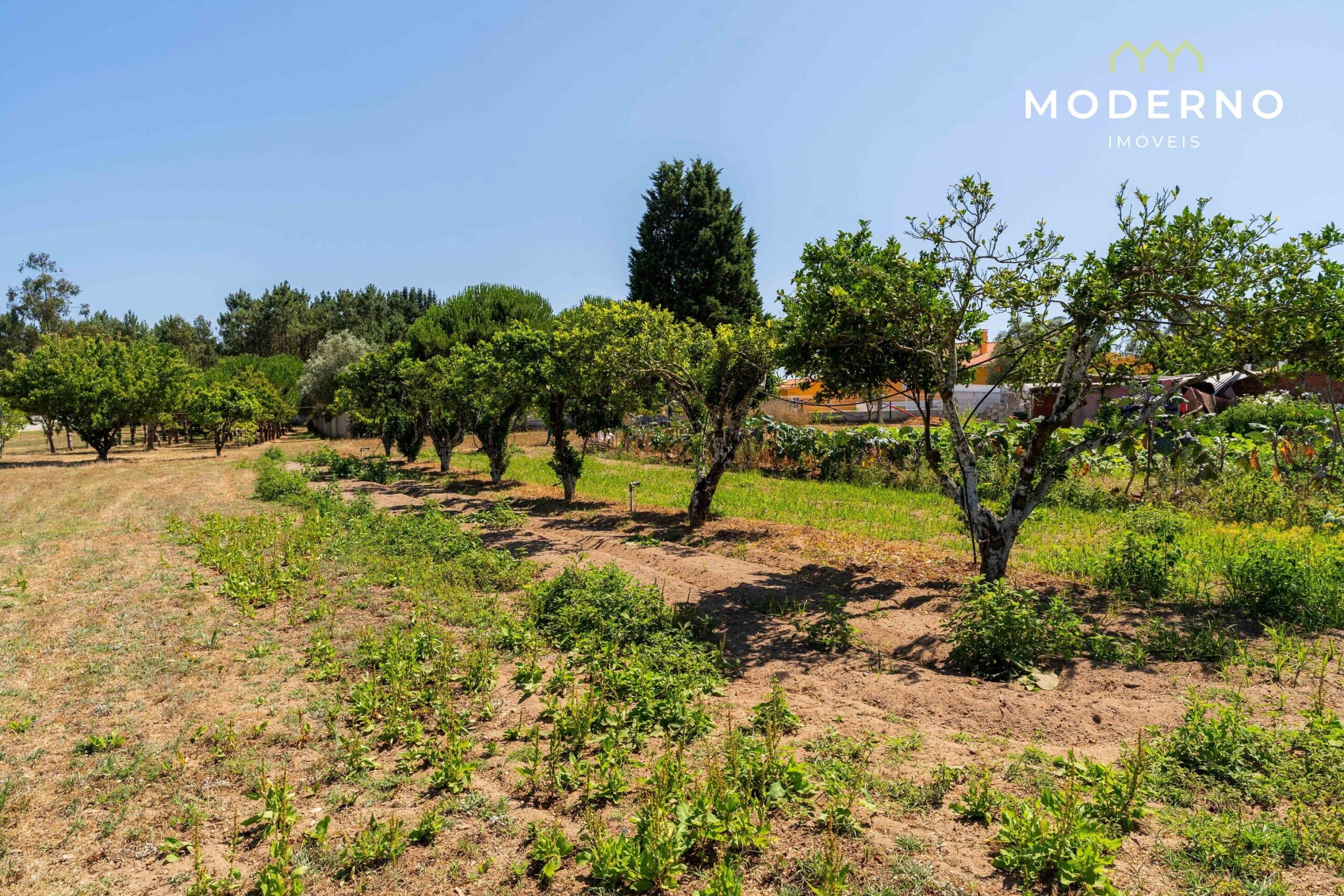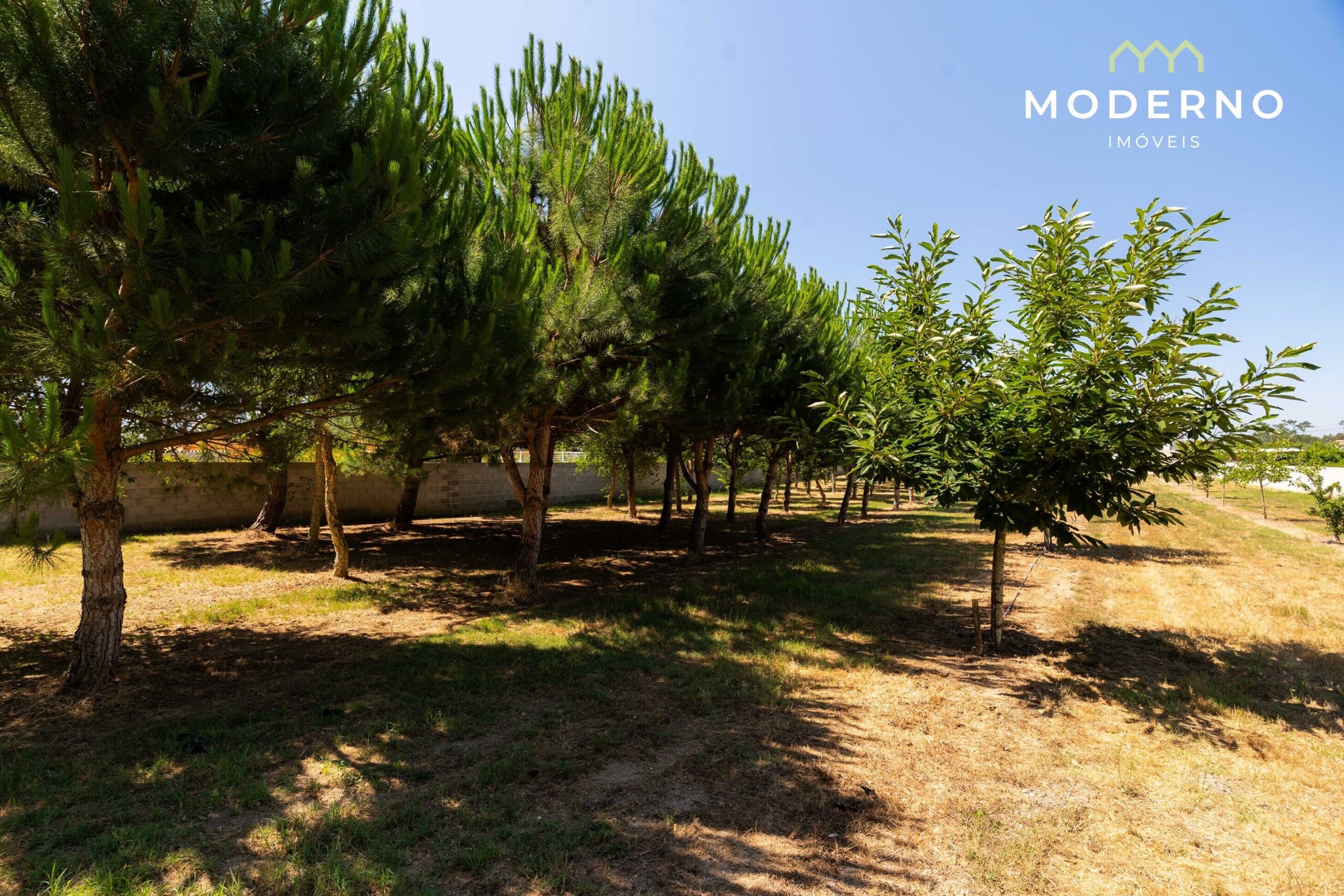 - Terreno murado, bem cuidado, com árvores de fruto e pinheiros mansos, com poço e rega gota a gota instalada;