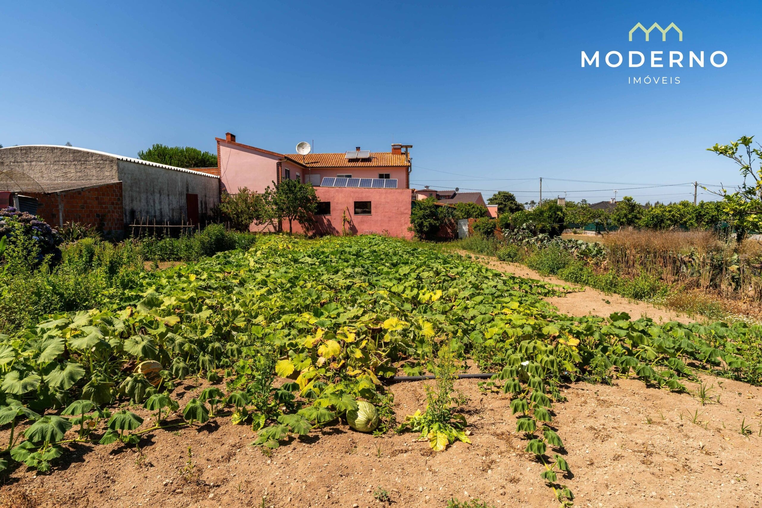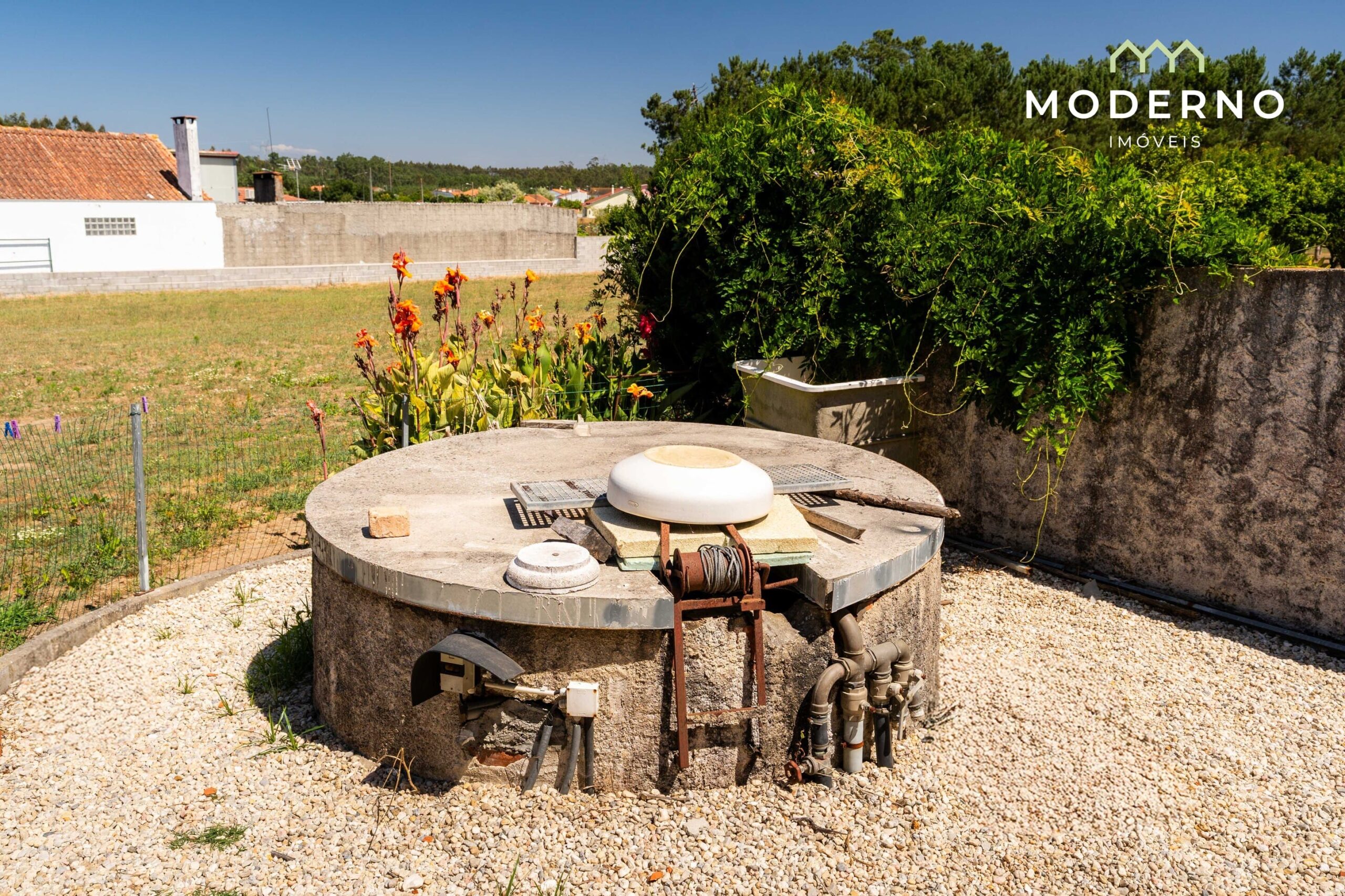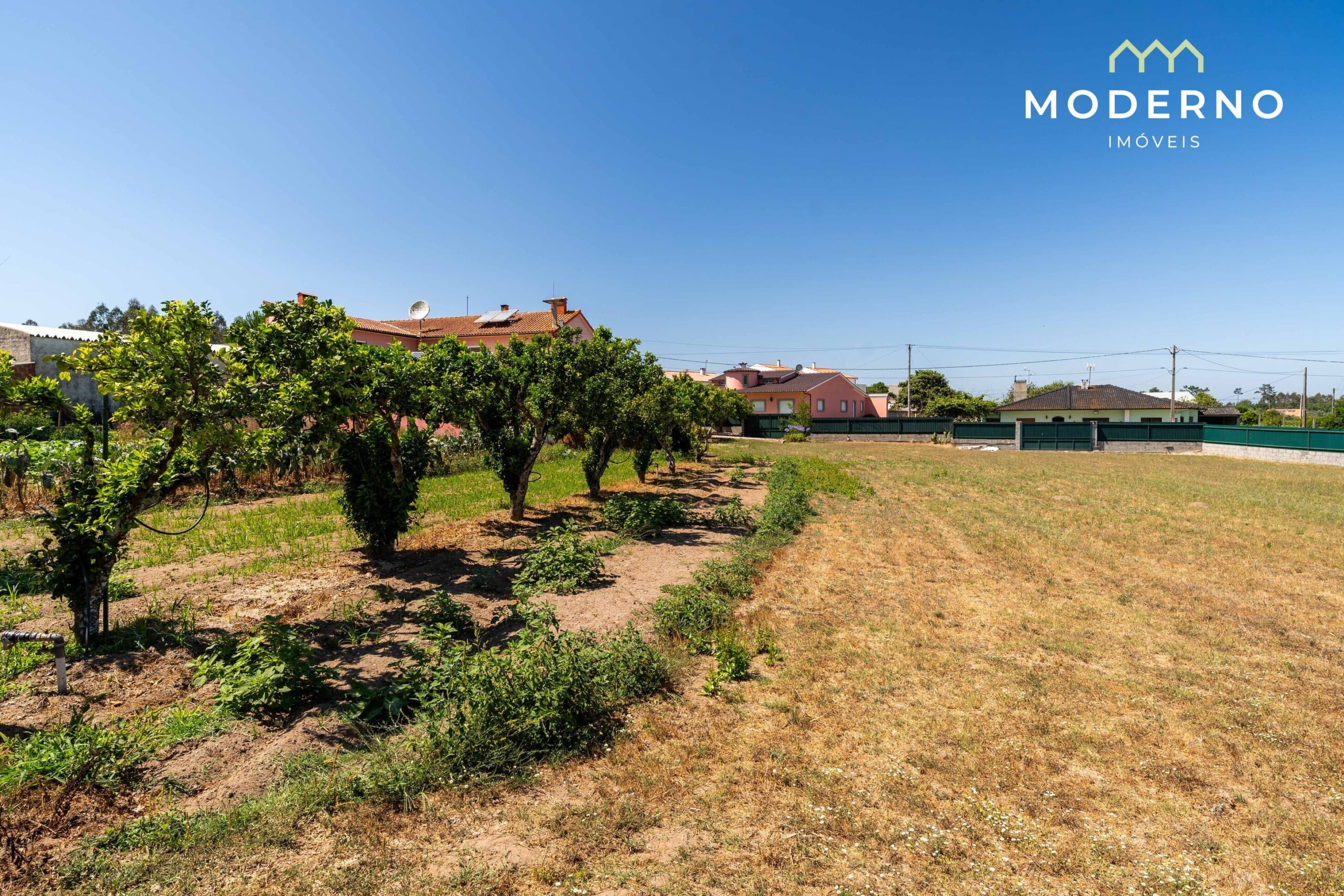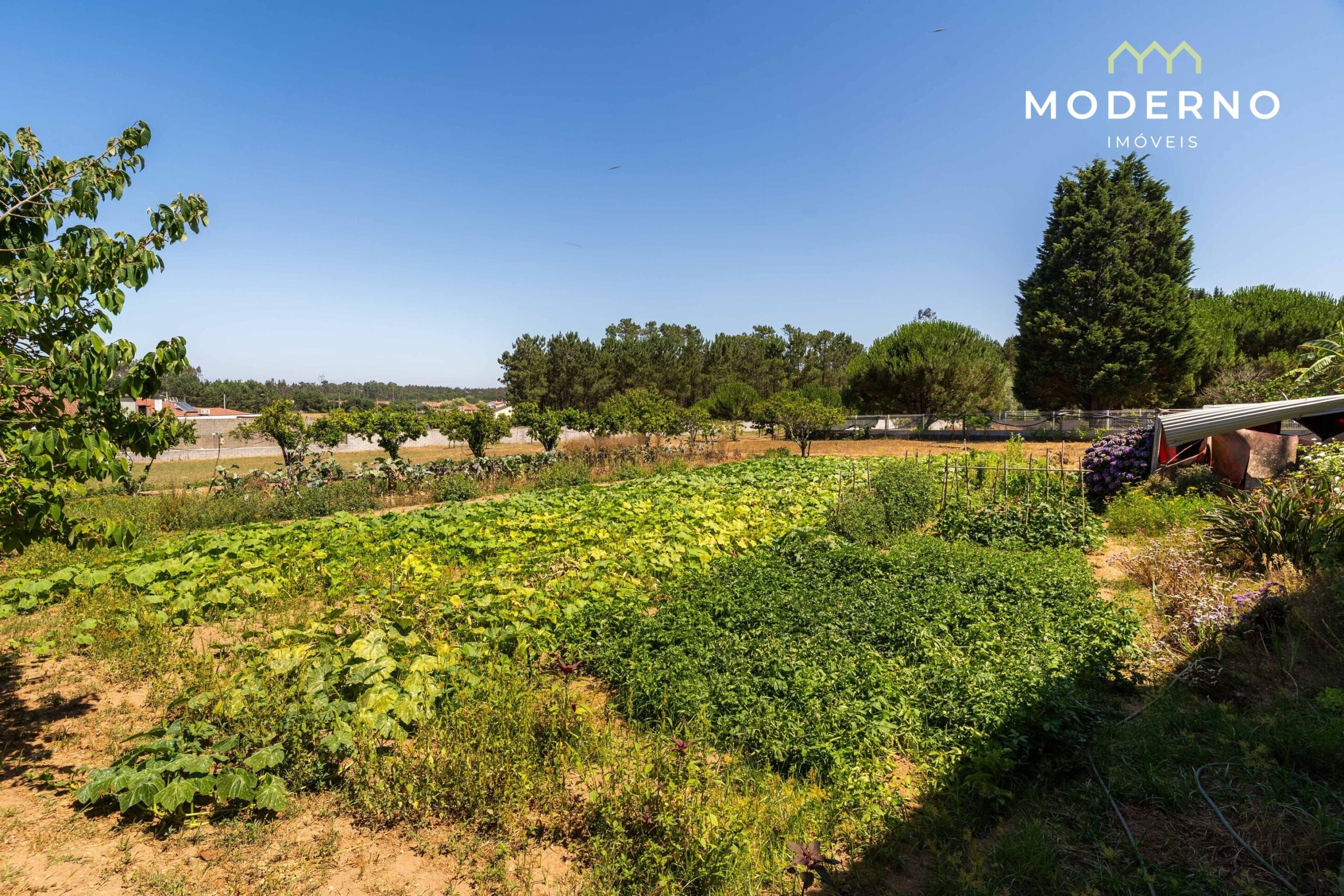 - Terreno murado, bem cuidado, com árvores de fruto e pinheiros mansos, com poço e rega gota a gota instalada;