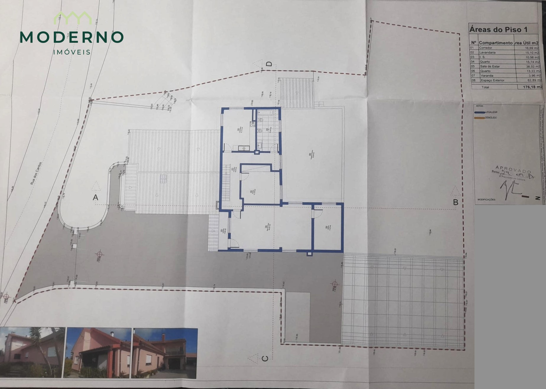 - Artigo independente com 730m2, em zona urbana (espaço urbano de baixa densidade) que, pelo PDM de Pombal, permite a construção de moradia unifamiliar até 430m2 de área bruta de construção e 292m2 de área de implantação, de cave, rés-do-chão e 1º andar;