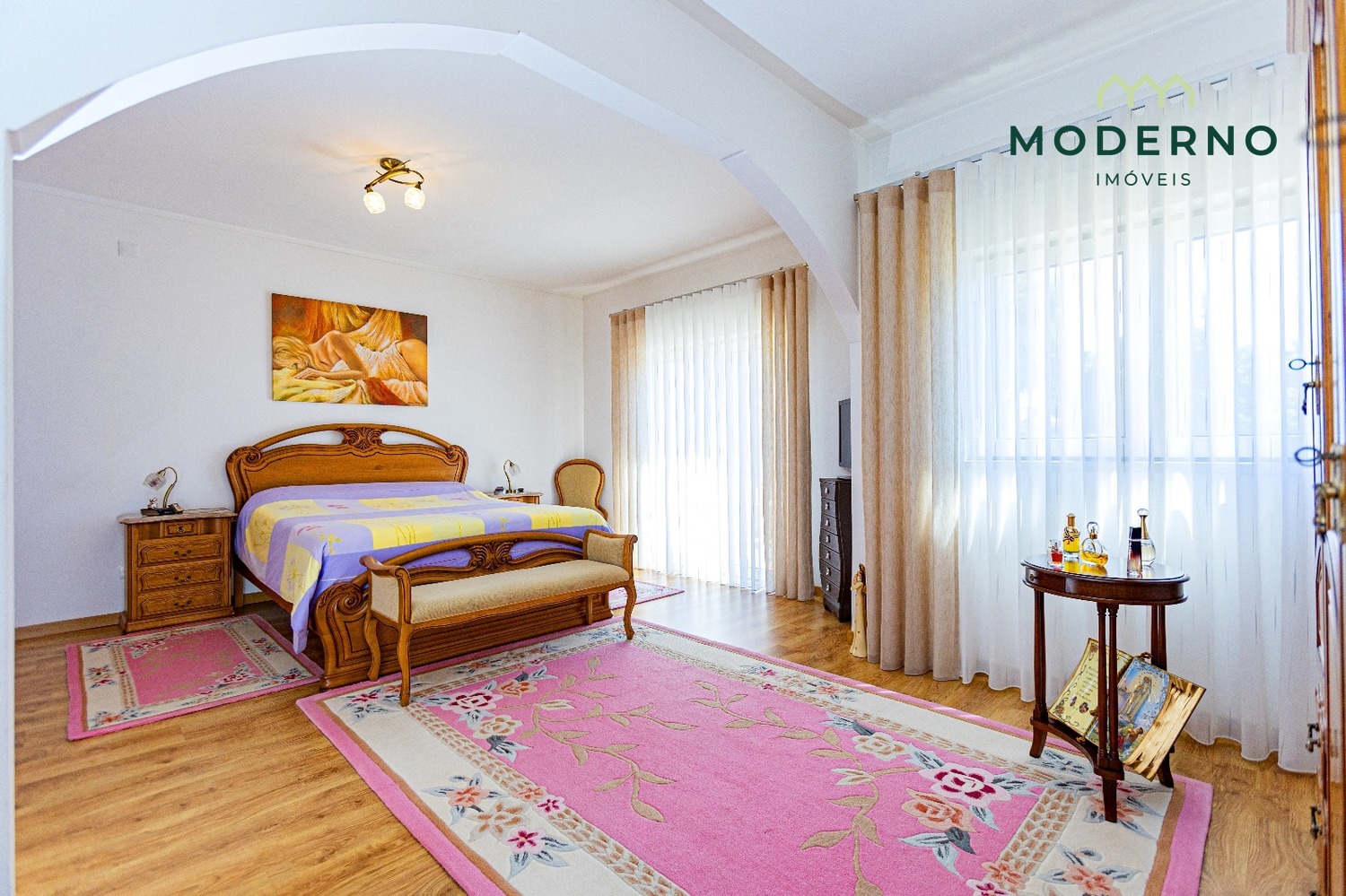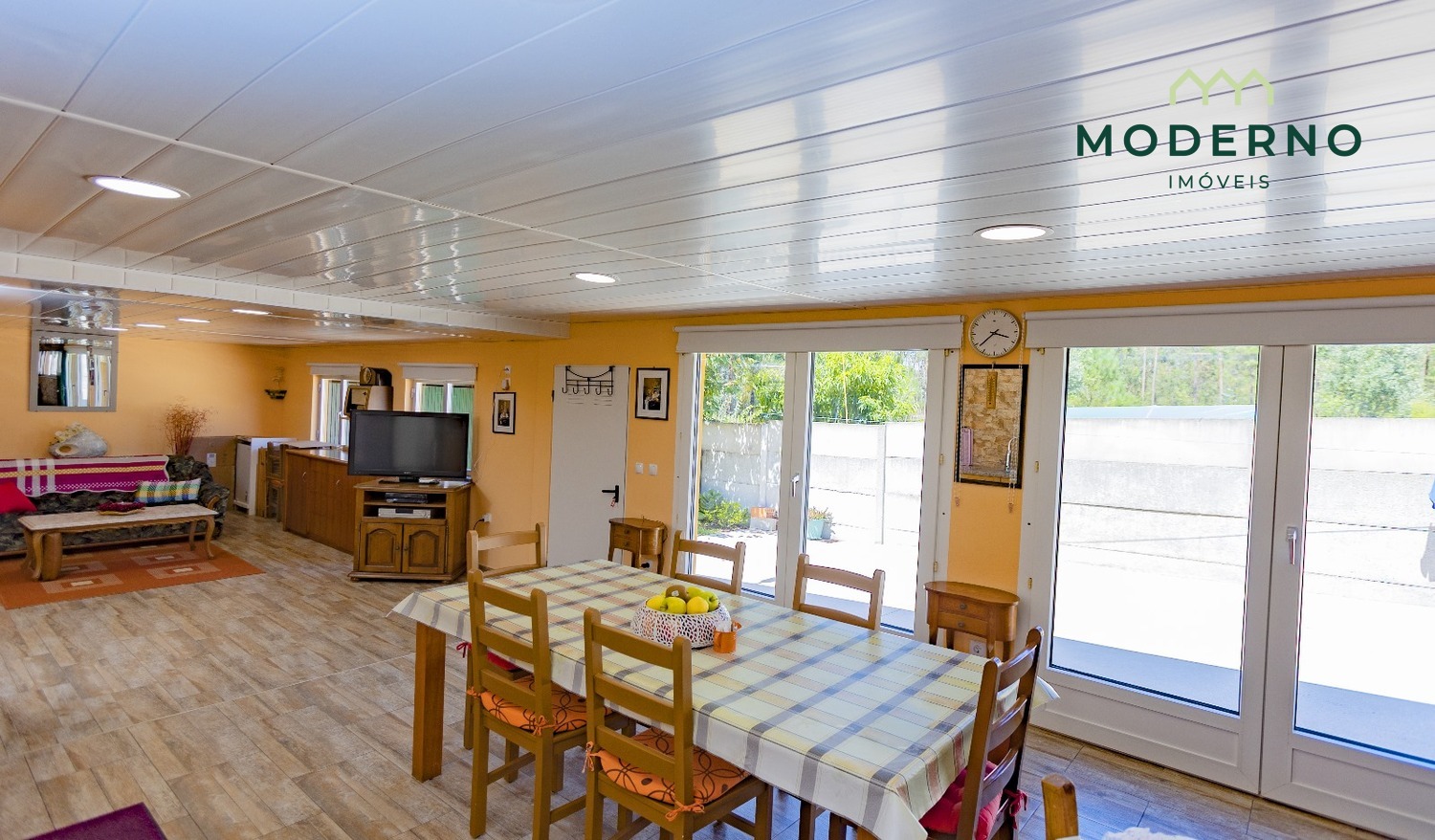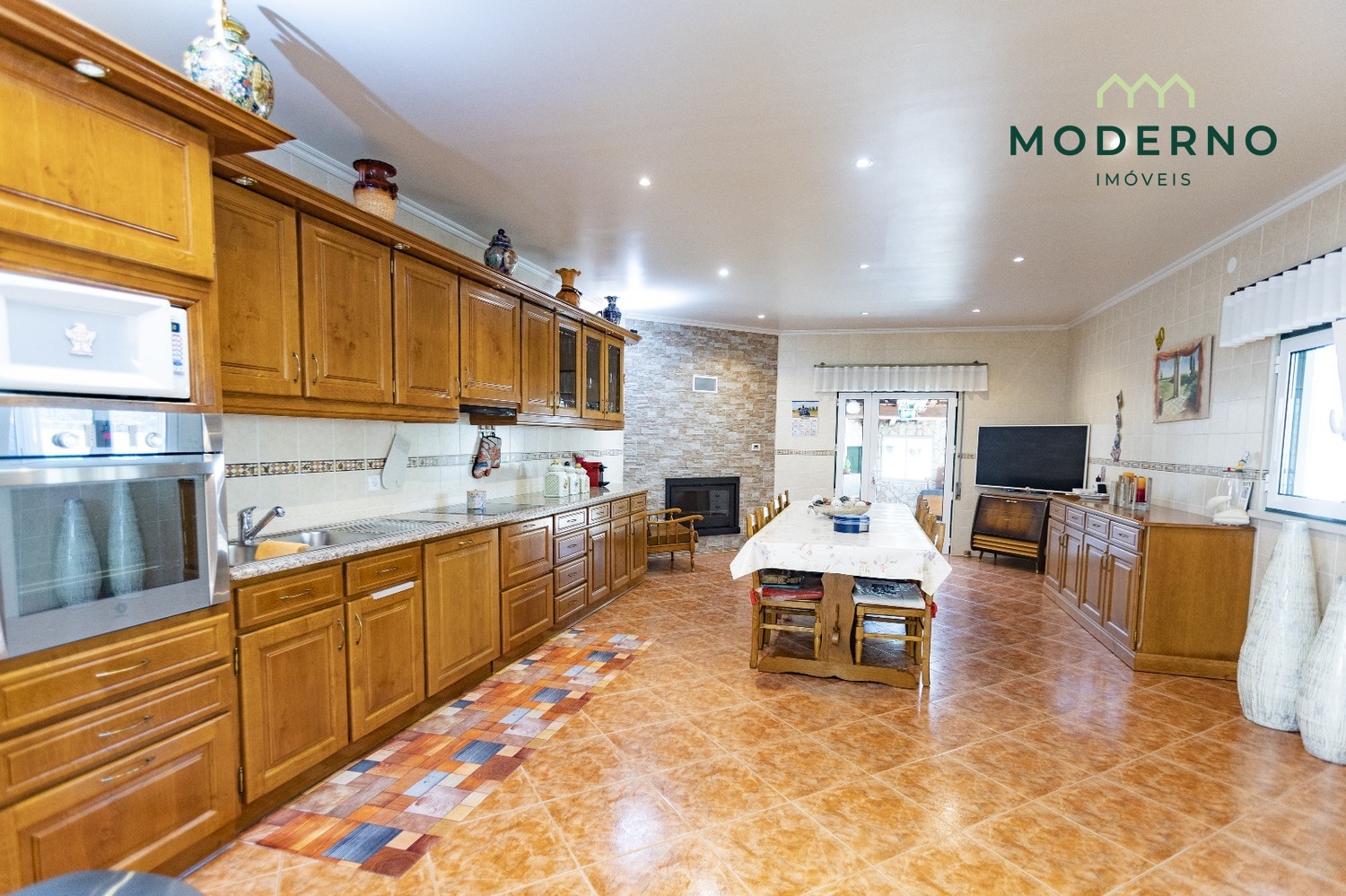 Com uma área bruta de construção de 483,50m2, esta moradia está distribuída da seguinte forma: 4 quartos (2 com roupeiro embutido), 2 casas de banho, sala de estar, cozinha e sala de jantar, lavandaria, marquise, espaço com churrasqueira e forno a lenha, cozinha exterior com lareira e salão de convívio, garagem e zonas de arrumos.